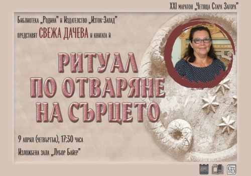 „Четяща Стара Загора“ ще запознае читателите със Свежа Дачева Събитието ще се проведе на 9 април от 17.30 ч. в изложбена зала „Лубор Байер“ 06/04/2026