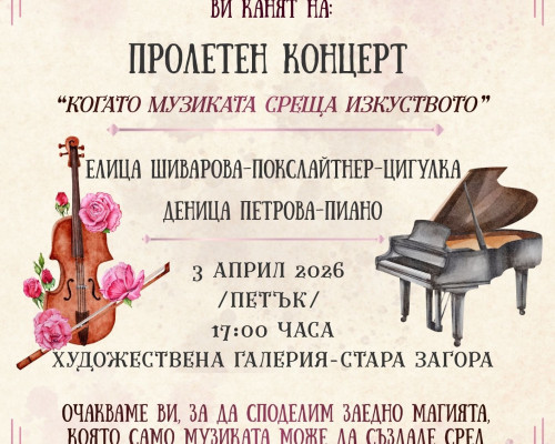 Концерт „България в нашите сърца“. С участието на: хор при НУМСИ „Христина Морфова“, ученици от класовете по класическо пеене, солисти от Държавна опера – Стара Загора и преподаватели от НУМСИ „Христина Морфова“. Диригент: Стефка Минкова. Клавирен съпровод: Полина Влахова и Венета Янкова.